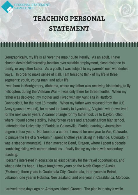 Read Online SAMPLE TEACHER PERSONAL STATEMENT Hardcover Internet Archive